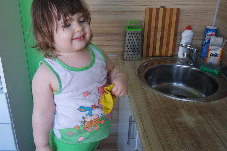 8-00 Анюта кушает, а я в душ, потом тоже кушаю и убираюсь.