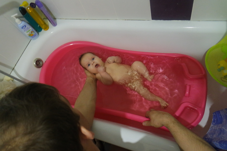 20-00 Пришла домой. Мила на руках у мужа ( обычно виэто время она уже кушает). Муж делает воду и купает Милу