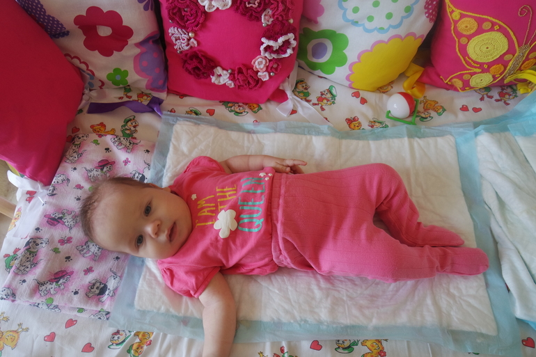 18-10 Милочка проснулась, подмываю и кормлю. Муж будит и одевает Анюту.