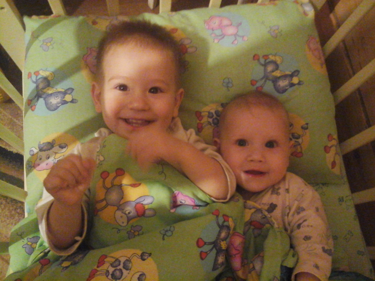 Наши детки (развитие, успехи, фото)Уже как минимум полгода я тут не была ,не читала и вообще не заходила.С погодками оказывается не так легко как я думала.Мы растем.Титю давно бросили.Перешли полностью на ИВ,т.к. у меня был гормональный сбой и пропало молоко(Дочка во всю бегает в ходунках,сама встает и пытается идти уже.Нам 8 месяцев.Максимка тоже подрос.Наконец-то начал говорить предложениями.Очень долго я этого ждала!!!Времени совсем нет написать большой пост.