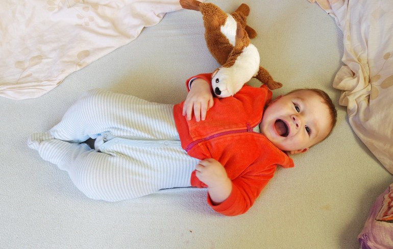 Максику исполнилось 7 месяцев, и за день до 7 он пополз! Не как обычно на четвереньках, а своим каким-то оригинальным способом: встает на четвереньки, делает один шажок и ложиться, потом снова встает , шажок и ложиться) Получается как гусеничка)) На полмесяца раньше, чем дочка. Любопытство в глазах, все хочет, рвется на пол) Я занимаюсь генеральной уборкой и убираю параллельно всю мелочевку, которой так любит играть Анюта.