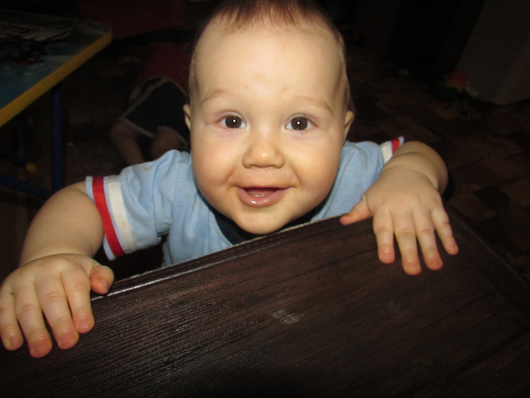 Кирилл. 11 месяцев. Вес примерно 14,5 кг, рост примерно 82. Не были в поликлинике уже 3 месяца и не очень то туда тянет. Ползает как электровеник, ходит вдоль опоры, делает первые самостоятельные шаги. Научился слазить с дивана.