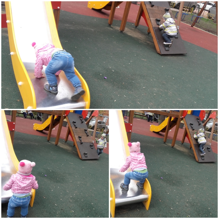 Неее,я наоборот радуюсь тому,что Дима пытается лазить по горкам и всяким штукам,т.к.у него некоторая моторная неловкость,поэтому ему полезно. Просто его страховать надо) а так мне дико повезло с ним. Он у меня очень послушный и спокойный. В 90% слушается и почти всегда спокойно реагирует. Он у меня раньше так в песочнице мог сидеть или с горки кататься,а последнее время стал более активным т это радует. Он же еще хочет похвастаться умпехами))))В целом прогулка именно несколько напряженная,т.к.следить за 2 надо,таскать иногда двух,но именно напряженно,а не сложно и,как правило,без негатива)