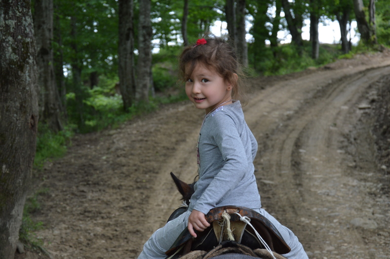 Пусть мы долго собирались, медленно ходили, отрывали по полчаса детей от магазина с игрушками, поездка была интересной. Сделали Нике сюрприз, съездили на конную прогулку в горы. Ника сама ехала, Захар с инструктором.
