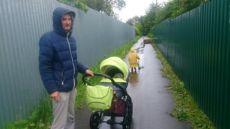 В 5 мы стали собираться на улицу. Вышли только в 5:40 и пошли встречать папу