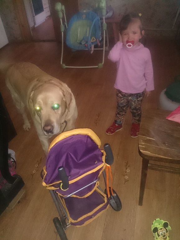 . Тасюня в это время сидела рядом и делала вместе с нами зарядку, чистила носик,пила витамин д)))) В 8:20 мы положили Тимона спать на веранду. Тасюня начала плакать, что Зевс (лабрадор) ее лизнул в ушко