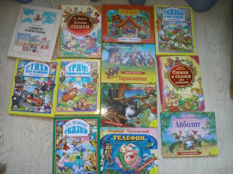 я купила кучу книг и читаю с картинками. моему уже недели две нравится про храброго зайца косые газа короткий хвост, читала конька горбунка, пушкина, теремок панормка, таракан панорамка, айболит панораска, заюшкина избушка тоже любимая, про богатырей купила былины и читаю тож нравится, вообще очень много книжек для деток интересных например про пингвинеенка, львенка, слоненка они поучительные. и Барто просто на ура идет.