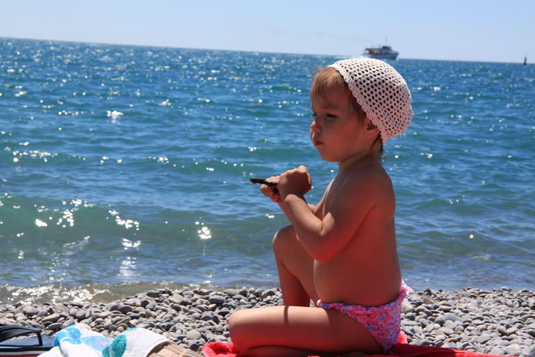 Началась тут жара) а прилетели было прохладно. Море не холодное, но и не сказать что теплое. Очень красивый город. Я иначе себе представляла Ялту. Все утопает в зелени. Горы. Красотааааааа.... местные жители очень приветливые, всегда помогут, с удовольствием подсказывают дорогу, помогают мне коляску таскать) в магазинах тоже продавцы приятные. Мы тут даже в поликлинике успели побывать. Врачи тоже оставили приятное о себе впечатление. Я хотела платно пойти на прием, что б без очереди, но меня уговорили идти бесплатно))) типа положено принять бесплатно и зачем мне платить. Меня это тоже очень удивило)