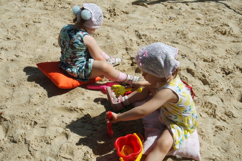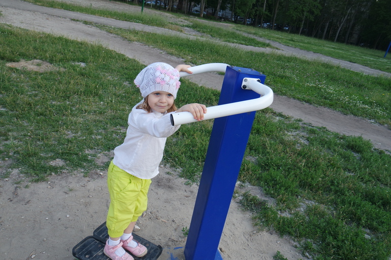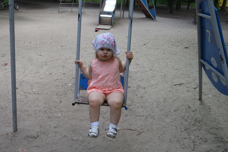 Лиза, к слову, до сих пор не научилась самостоятельно раскачивать качель, но часто качает Анюту).
