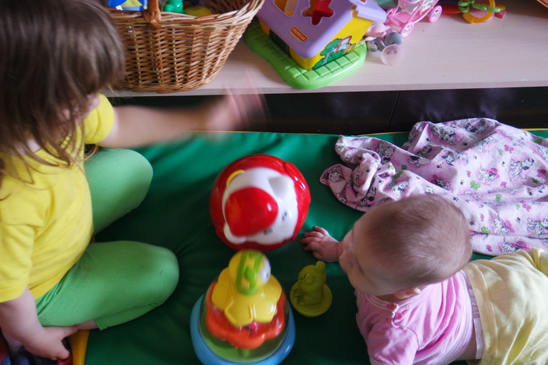 Бывают приступы ревности( к счастью, редко). Сейчас сижу в кресле, пишу пост с телефона, Анечка села на колени обниматься. Лиза увидела и тоже обняла меня. Анюта ущипнула Лизу за щеку (ревность). Лиза научилась давать сдачу!!!- тут же тоже ущипнула Аню за щеку) ( щипаются слабо, без слез). В поликлинике я держала Аню за руку, Лиза играла с мальчиком из д/с. Потом тоже захотела взять меня за руку, обняли за ногу и кричали " моя мама", "нет, моя мама"...