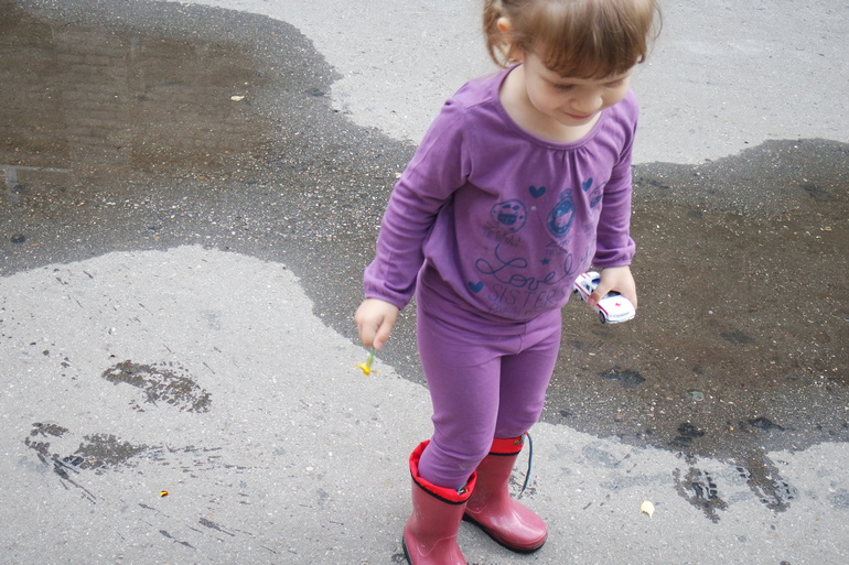 Любит сидеть в травке, может лечь полежать, пожмуриться на солнышке)). Не ходит за руку, не ходит по дорожкам... Бежит куда ветер дует. Если не хочет идти просто ложится на землю. Кисель. Поднять не возможно, только взять на руки. На руках пытается выскочить. ... С тремя детьми гуляю только во дворе! , ну, и в соседнем дворе, тк нет дороги. Конечно, любит ходить по грязи и лужам, любит сидеть в луже.....Причём именно сидеть, а не вредничать...Как я в жару мечтаю о море, она с таким желанием садится в лужу! Единственный способ избежать грязной лужи-качели. Качели обожает!, сама раскачевается!