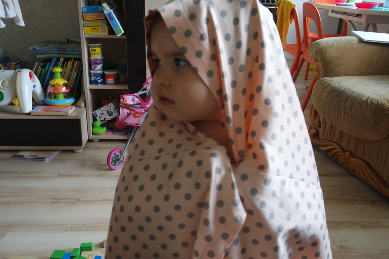 на фото Анюта стащила с вешалки мой халат...