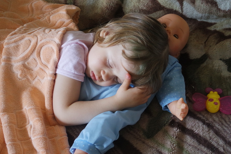 Лиза устала, уснула на диване)