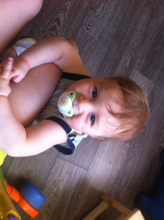Максик тоже радовал в этом месяце: вырастил еще 3 зуба (теперь 8 зубов), наконец-то стал садится на попу с четверенек (долго не делал этого), отпускается от опоры на секундочку, но еще боится и сразу хватается снова, говорит мама, папа, надо, дай, ням-ням, бух и еще много непонятного.