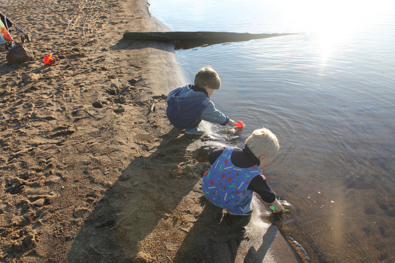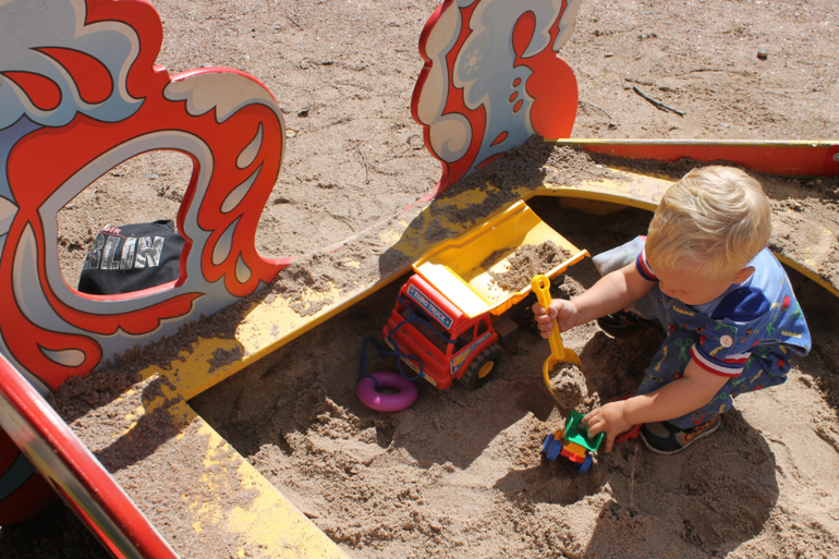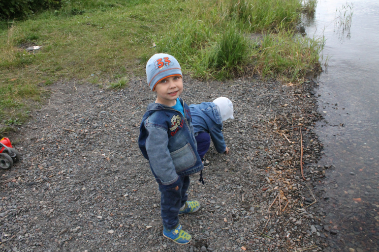 Встретились с подругой детства, погуляли, вместе с Серёгой и её детьми. Старший мальчик любезно предоставил свой самосвал, пока мы здесь. Ооочень выручил, мои дети соскучились по машинкам - у Таты же двое внучек, уже довольно-таки взрослых, и всю жизнь у нас тут была девическо-женская компания, маленьких мальчиков давненько не водилось...