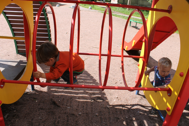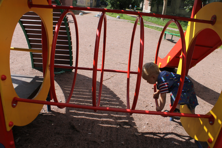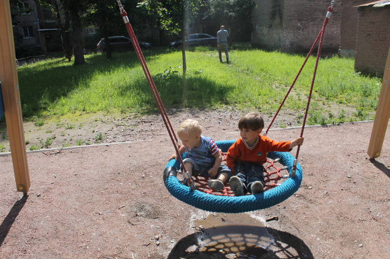 Всё-таки не будешь всё время дома сидеть, надо выбираться в город, там есть огромная детская площадка, Серёжа уже соскучился по таким.