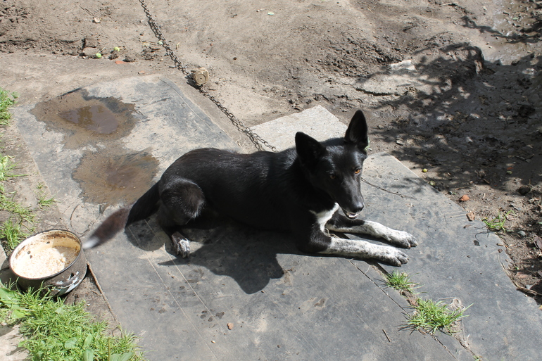 Ещё нам очень рада Нюша - смешная собака неизвестной породы с ушами-локаторами. Четыре года назад она была весьма глупым щенком-подростком, за прошедшее время изрядно поумнела. Два дня мы друг к другу присматривались и на всякий случай обходили её стороной, а потом осмелели, а некоторые мелкие пацанята так вообще обнаглели и подружились...