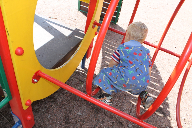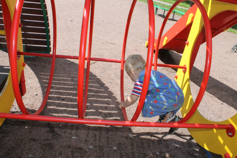 Митька поразил меня тем, что научился пробираться по такой штуке. один раз, правда, сорвался, но справился: