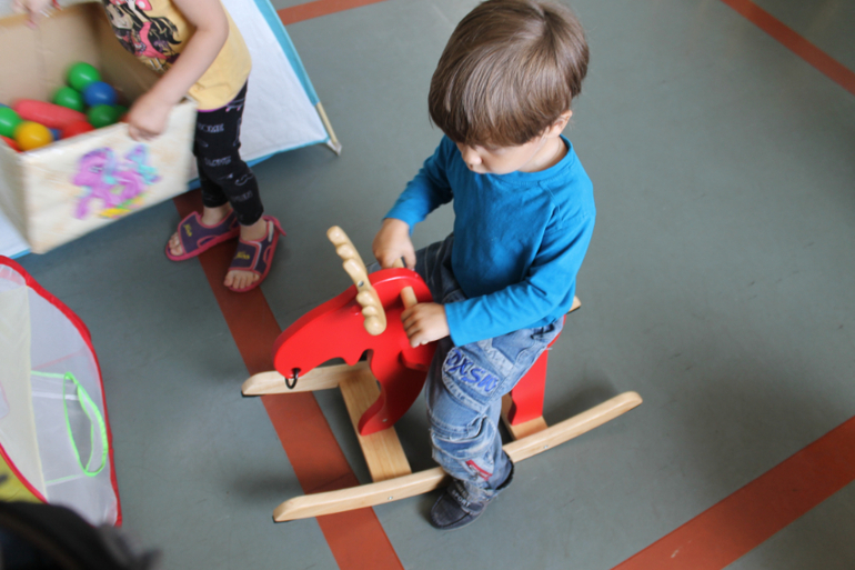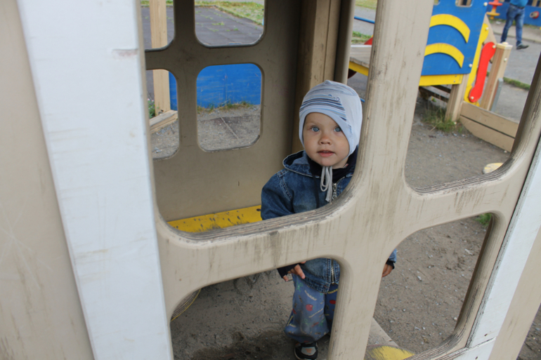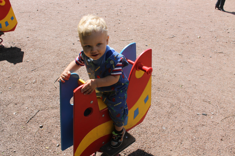 "Кораблище" произвёл на ребёнка неизгладимое впечатление. А Митя благоразумно оседлывал малышовые машинки и прятался в домиках.