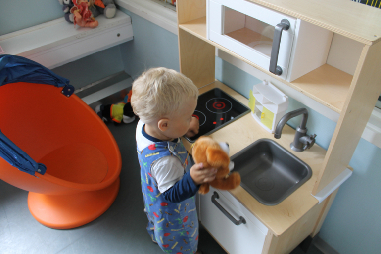 Отоспались, поиграли. Здесь есть деревянная "железная" дорога, икеевская. Я на такие засматривалась в свое время, но поняла, что ещё одного фанатизма, помимо лего дупло, наш бюджет не выдержит. А ребятам она приглянулась, и мне понравилась: очень приятна рукам… Митя только никак не может смириться с тем, что вагончики на магнитах не слишком прочно соединяются друг с другом.