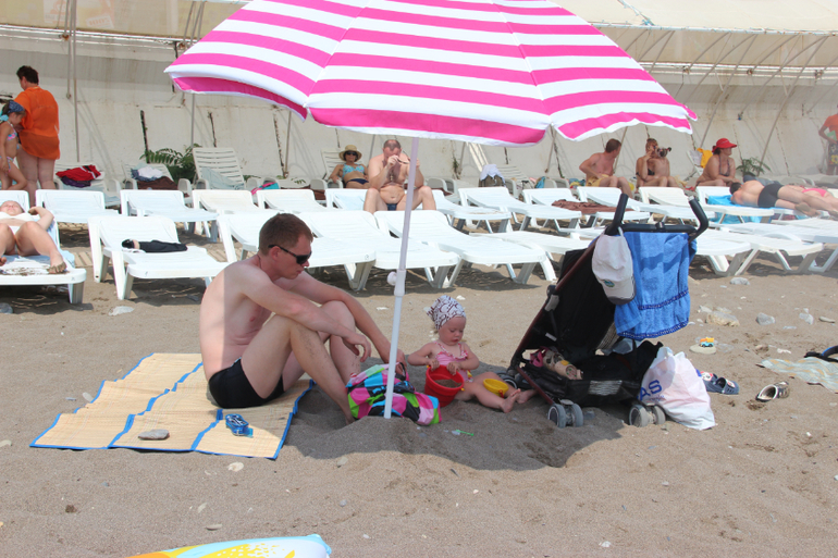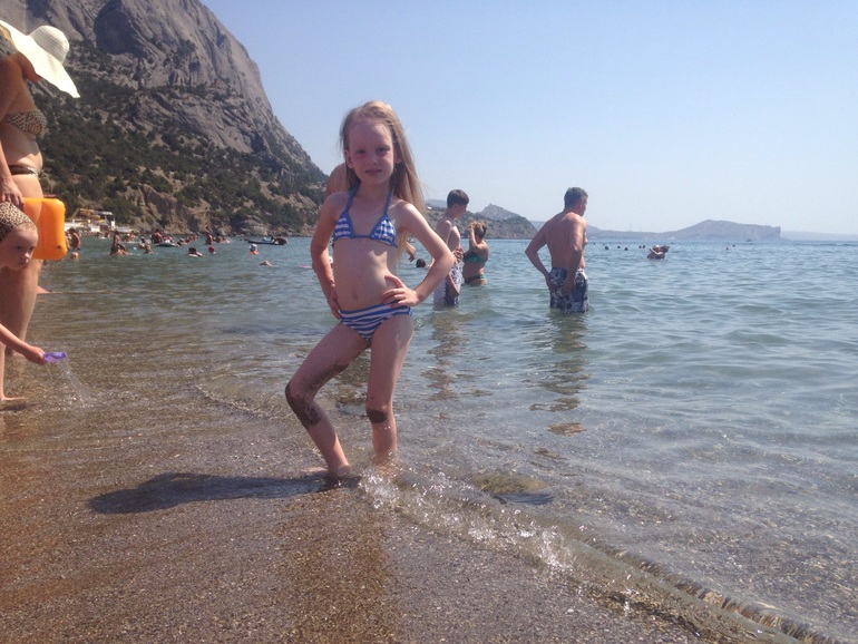 Зная, что впереди долгий отдых, хотела, по-приезду, поберечь деток, адаптироваться, а на день третий начать купаться, но я наивная, даже не смотря на опыт трех душ, рожденных мною))) В первый же день, не успев зайти на пляж, Софина с Катей понеслись в море, Натуся стала кричать, когда ее разули, а уж от воды вообще шугалась, но когда поняла в чем дело, первая неслась в воду), по-ходу она-то больше всех потом и купалась)))