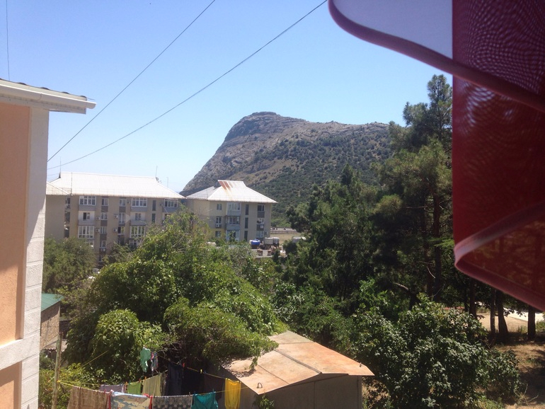 И еще момент!, кормят невкусно,ни в столовках, ни в кафе, ни в ресторанах. Обычная еда, приговоренная не очень умелой хозяйкой. Я к еде щепетильна, сама люблю вкусно готовить, а от еды в ресторане всегда ожидаю изысков. Выбор квартиры еще пал из-за стиральной машины. Обслужить пять человек, постирав каждому по два-три комплекта купальников и одежды в сутки, не так уж просто вручную. В том году я очень устала от этого. А тут пришли с пляжа, поставила кастрюльку на газ, вещички в стиралку, пока искупались, обед готов и вещи чистенькие, красота!) Кому интересно по-цене, двушка нам обошлась за 3300руб в сутки. Две дочи спали на раскладном диване, младшая - на кресле, которое мы барикадировали с мужем, ибо летала она с него постоянно, юла моя) Вид из квартиры на горы, из спальни море видно.