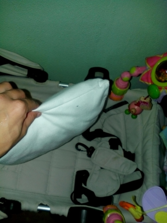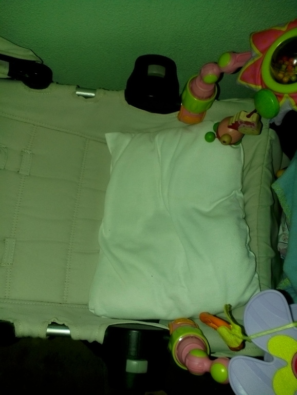 Купила спец.подложку, которая держит голову. Реально получается, что ребёнок лежит как в коконе, ножки вверх.