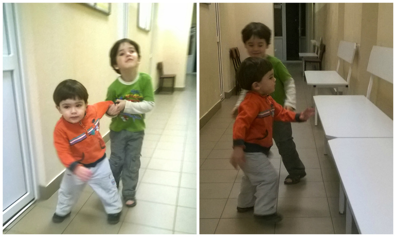 Выписали нам направление, и мы пошли к прививочному кабинету. Перед нами два малыша, красота - ничего не предвещало)).