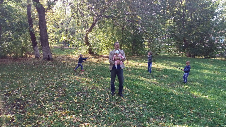 Внизу есть в комментах фотка, где они бесятся с палками бегают, а Диана с огромной веткой)