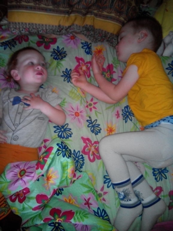 Жалко что дети не играют друг с другом и требуют много моего внимания, таким образом времени на дела совсем мало. Вова отбирает игрушки у Дена, а Ден у него. Но Вова старше и сильнее и итог понятен. Часто стоит в углу и просит прощения. Бывает сплю с ними двумя.