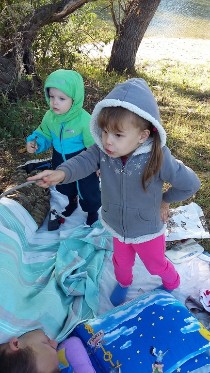 Отдых с погодкамиА у нас бабье лето! После ледяного ветра будней,выходные порадовали солнышком и теплом.Мы много гуляли,а в субботу решили ехать по грибы) Набрали вкуснях,пледов,подушек! Долго искали местечко,остановились в устье ерика Верблюд за Волгой. Детям ооочень понравилось валяться на берегу.Ванька ползал по пледу,папа успел подрыхнуть на природе. Кстати,ели котятки там отлично!Правда,выяснилось,что я забыла мерную ложечку для смеси и сыпала все на глаз)) Папа-то только вилки взял.