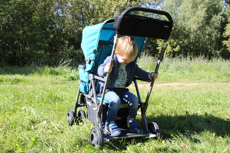 Единый для двух сидений, перемещается вперед-назад. Предусмотрен тент для старшего ребёнка. |