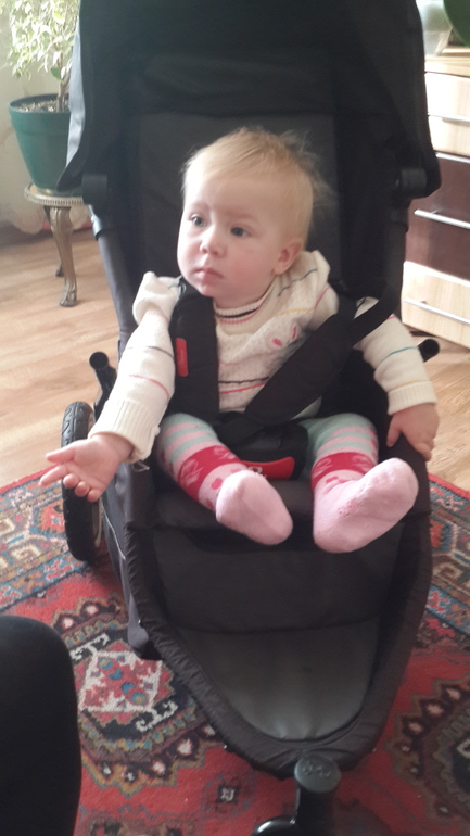 То ли коляска такая большая, то ли Лёля маленькая, но этот бортик так высоко и далеко находится