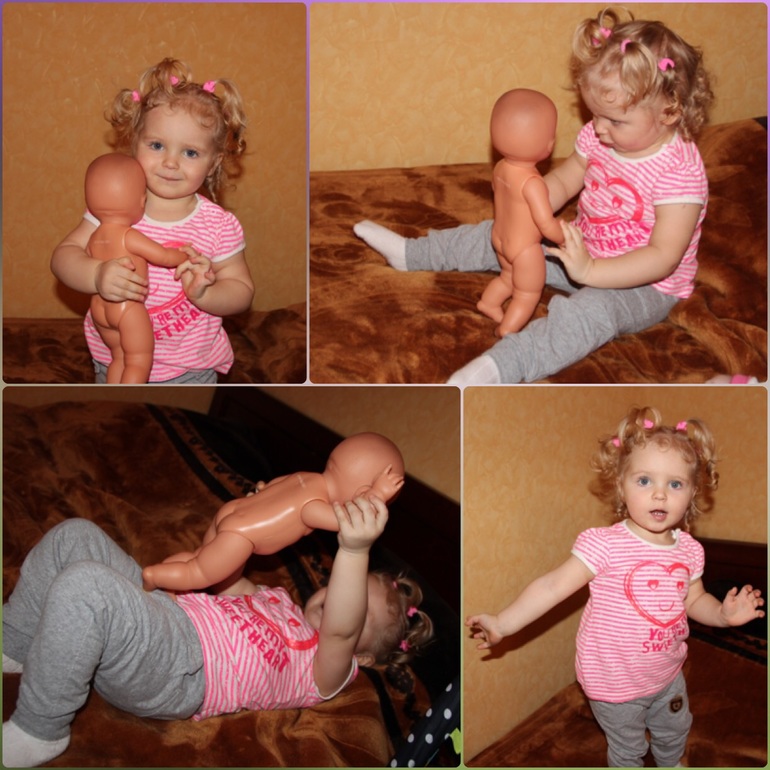 Алиса в этом месяце начала говорить ку-ку! На этом словесные подвиги закончились. Совершенно точно уже могу сказать( специально наблюдала), что Алиса понимает речь очень хорошо. Без жестов и кивков. Мама обнаглела и теперь подгузники и себе, и Лиле приносит Алиса:) И никогда не ошибается пачками:) А еще носит по квартире за Лилей ее погремушки. Я уношу Лилю на кухню например, и Алиса тут же с криком краснокожих Ляля! тащит Лилины погремушки, а иногда и одеяло:)