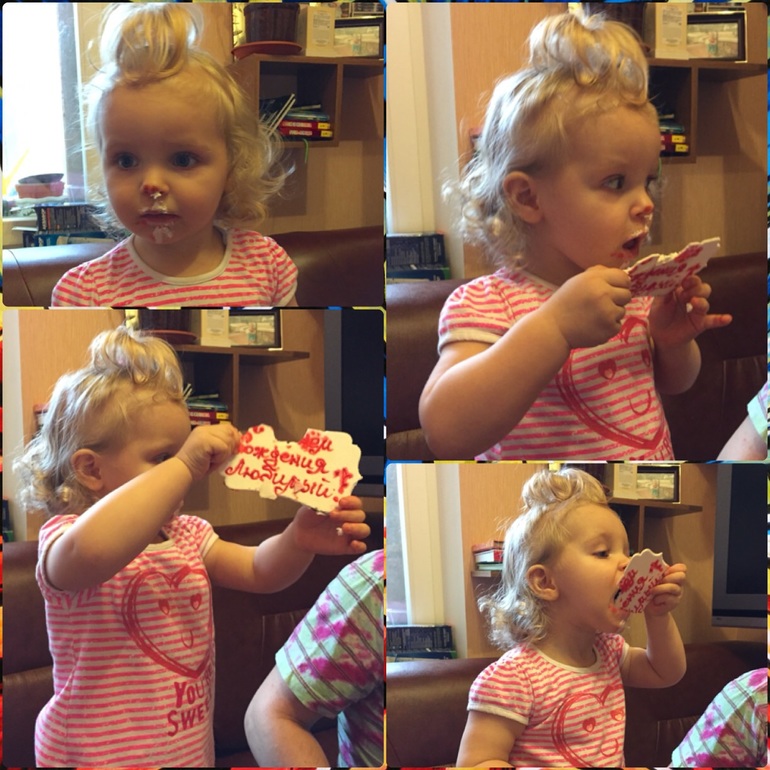 8 марта у Алисы удался! Двух зайцев одним выстрелом: и пальцы облизывать научилась, и торт распробовала:)