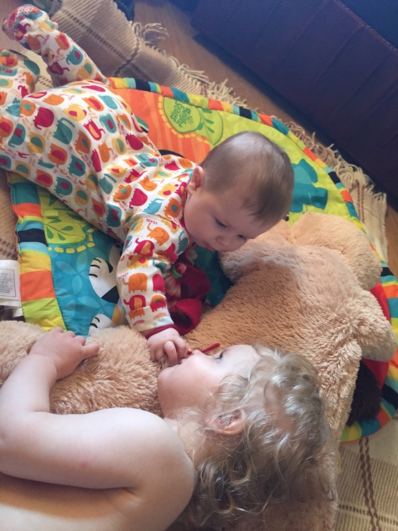 Болтает Лиля много, все смотрит, облизывает, грызет. У нее появился звук МА! Щщщастью моему нет предела!:)