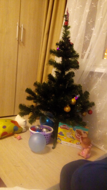 Нарядили ёлочку, правда по прежнему убрали на шкаф, чтоб достояла до Нового года, хотя бы))
