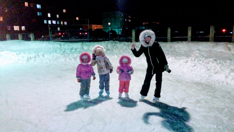 В честь этого дня уговорили папу вместо ремонта пойти с нами на каток. Теперь у всех трёх сестёр свои коньки. Тут видюшка небольшая: Тык