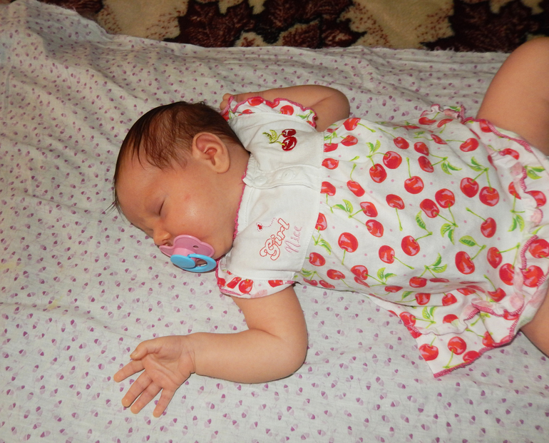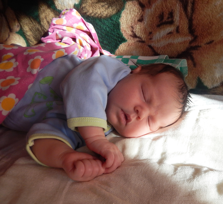 Кушает Дашуня хорошо, стала есть также быстро, как когда-то Стёпа, но срыгивает больше, чем он в младенчестве, иногда вертикально держать после кормления приходится даже ночью. В общем, жадная до молочка дамочка. Спим мы вообще не так, как планировали до её рождения. Папа наш в зале на большом разложенном диване один. Стёпа в своей кроватке рядом, а Даша в спальне со мной вместе на детском разложенном диванчике. Он длинный, но узкий для двоих, даже если этот второй совсем маленький и у меня периодически затекает тело. Но коляску, в которой она предположительно до 3-4 месяцев должна была спать убрали, ибо она одна не засыпает. А мне проще укладываться вместе, зная, что так она через 10-15 минут уснет, чем укачивать её полтора часа ради раздельного сна, теряя драгоценные минуты собственного отдыха. У меня самой грудь ведет себя так, как будто Даше уже полгода - то есть приливы молока чувствую только когда она начинает сосать, и то не всегда. Со Стёпой помню первые месяцы спала, подкладывая под себя сложенное втрое полотенце, т.к. молоко приходило чаще, чем он просыпался кушать и я просыпалась на мокрой простыне и диване.