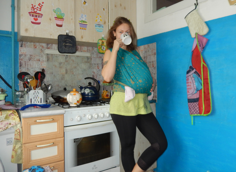 Мы освоили слинг-шарф, одеваю иногда дома: