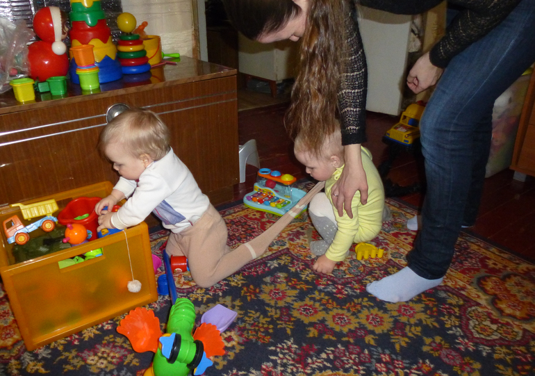 Мне очень сильно помогает мама. Она приходит к нам 4 раза в неделю и еще раз забирает Стёпу с ночевкой. Гулять с ними одна я пока не могу, а муж работает два через два по 12 часов. Так что либо с мамой, либо с мужем гуляем. Коляска у нас прекрасная, для погодок, но в лифт она не входит в разложенном виде (потому как лифт старый, узкий, 30 лет не менялся) плюс ступеньки идут от лифта до подъездной двери 6 штук и снаружи еще шесть. А пандусов нет… По весне смогу одна гулять, посадив Дашу в эргорюкзак и держа Стёпу за руку до детской площадки, но пока я делать это не в состоянии.