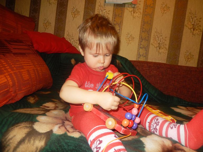 Научился расстегивать-застегивать карабин на детском стульчике для кормления. А вот книжки ему пока нафиг не нужны. На мозаики, пазлы, пирамидки не хватает терпения. Рисовать, лепить - тоже пока особого интереса нет. Поражаюсь его зрению - едем на коляске и он бац! Пальцем в небо и начинает что-то вещать на своем тарабарском. Я поднимаю глаза куда он показывает и вижу, что там далеко-далеко самолёт летит. Самолёты вообще ни один не пропустит, если он на небе. Я раньше и не знала, что их так много летает)).