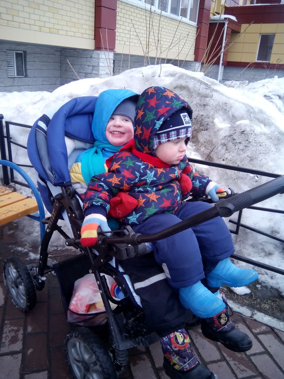 Мы сейчас тоже в одинарной ездим, только я раскладываю коляску до лежачего состояния и сажу их спина к спине, ноги старшей торчат из под копюшона коляски