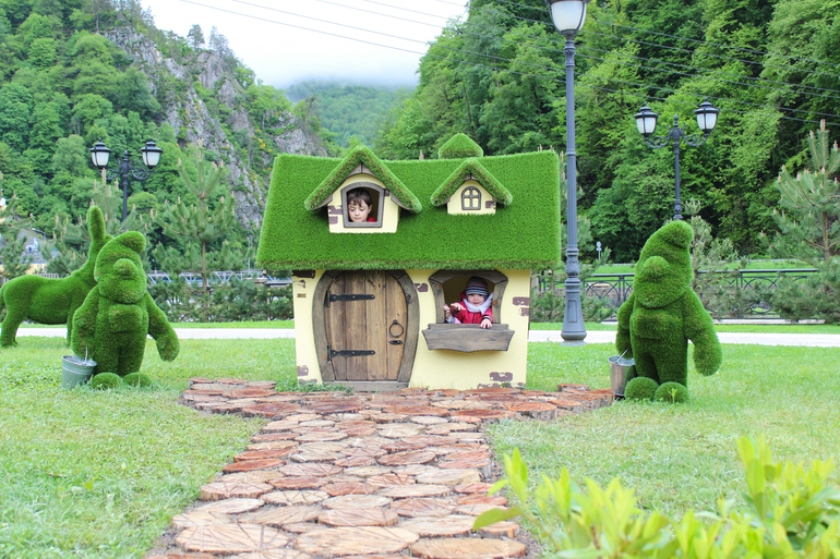 Отдых с погодкамиНе знала я, что в России есть такое место, где не как в России.. где чисто, красиво, где домики все красивые засмотришься, где все новенькое, где все уже завершено и нет возвышающихся строительных кранов вдалеке, где клумбы все идеально пострижены, где не ездят машины, где пахнет так вкусно, где приходишь с улицы в обуви и ее можно даже не снимать, потому что она идеально чистая, где можно разогнаться с горки на самокате по идеально ровному асфальту, где можно гулять возле бурной горной реки, где можно жить в огромных аппартаментах класса люкс, в которых есть все, что пожелаешь.