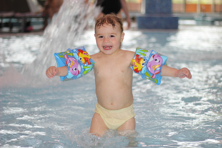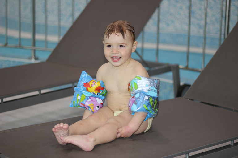Ходили в аквапарк. Там их два рядом. Небольшие, но хорошие! Как раз чтобы спрятаться от дождика. В аквапарке были с самого утра до самого вечера, еле утащили их оттуда, им все купаться и купаться! Аня вообще бесстрашная, залезает на взрослые горки у самого потолка и катается, в ушах вода в носу вода в голове вода, встает и говорит: "Я хочу еще сто раз".