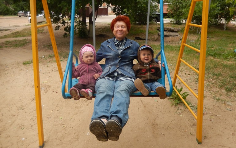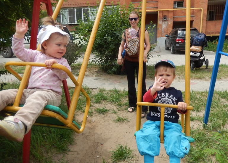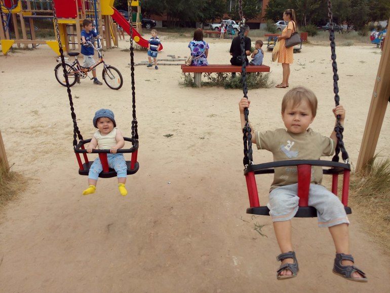 Наконец-то я дожила до этого прекрасного момента - качаю обоих на качелях!!!
