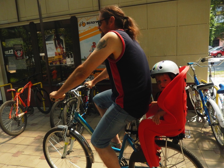 Несколько дней назад поменяли сиденья в нашей фил энд тэдс, всем нравится. Причем Стёпа не всегда сидит наверху. А сегодня был тот редкий день, когда мы гуляли с нашим папой и дошли до проката велосипедов. Всего за 120р. они катались целый час. Стёпа впервые в жизни так катался и ему ооочень понравилось. Ну и мне кажется, что это гораздо лучше, чем за 100 р. прыгать 5 минут в надувном батуте. Вышли из дома в 11 утра, а вернулись в 3 часа дня и он задрых на 3,5 часа!!! Так что однозначно будем кататься ещё!
