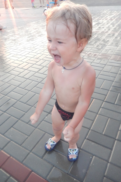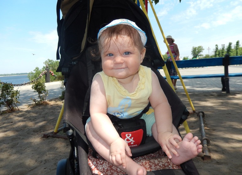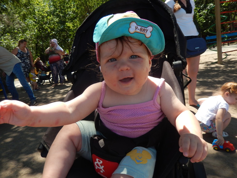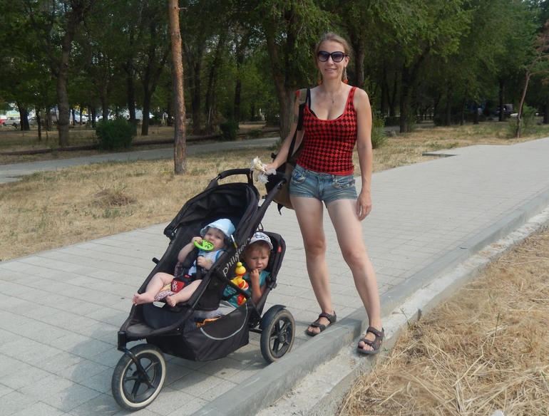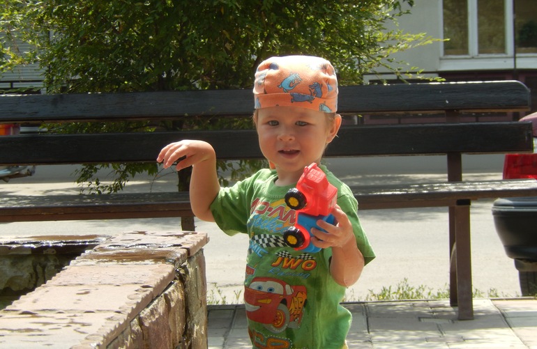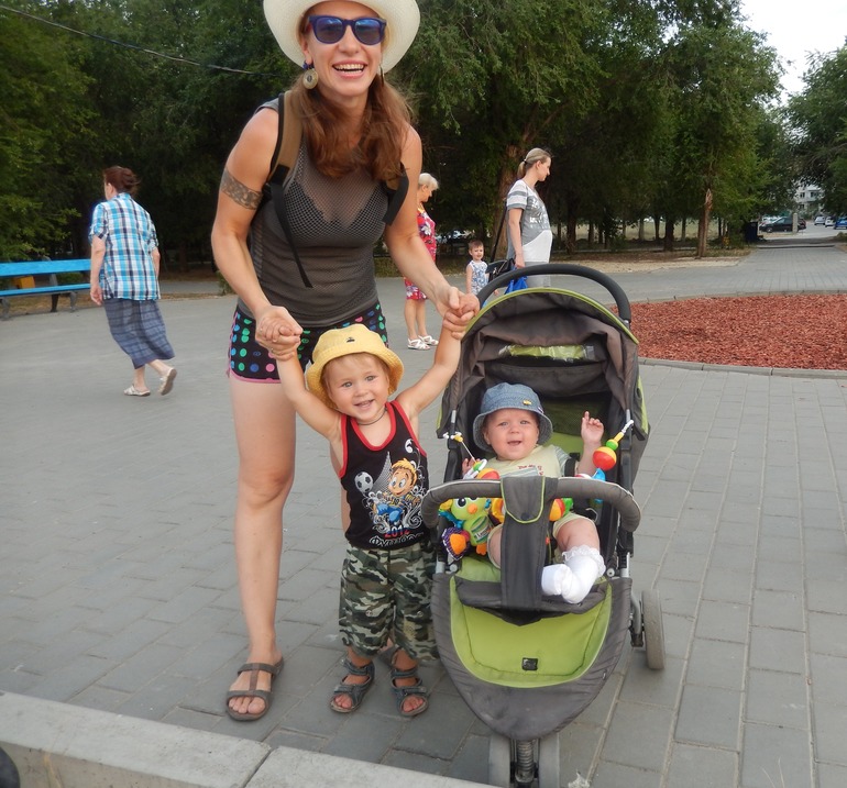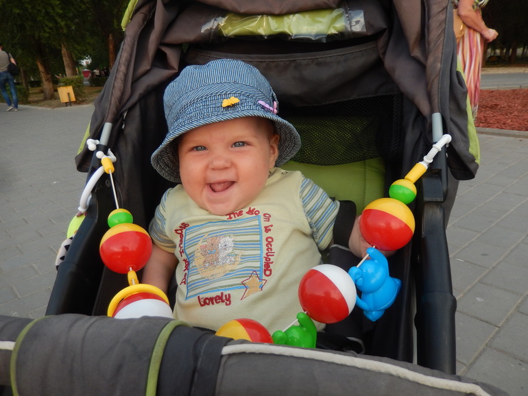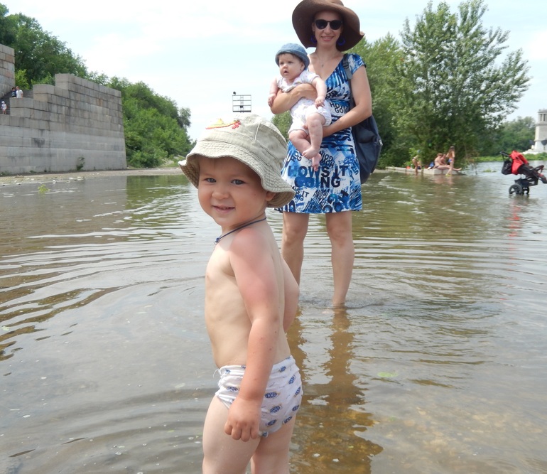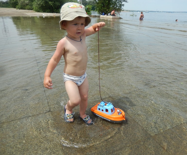 Мы очень много гуляем. Ну, правда, я не знаю гуляет ли кто-нибудь еще также долго? В среднем 5-6, а иногда и 7 часов в день. 2,5-4 утром и 2-3 вечером. Это, конечно, летом так долго началось, но зато теперь мы отрываемся. У нас рядом набережная, канал, открыли недавно фонтан, большие детские площадки в округе знаем все, да еще трамвайные пути в одной остановке!!! А там же дорога и столько транспорта!!!!!!!!! Что еще мальчику нужно для счастья? Разве что занятые другим ребенком качели или чужие игрушки. И тут снова здравствуй истерика… Не буду о грустном. Гулять это здорово. Даже если у вас как у нас +45 на солнце. Главное захватить из дома песочный набор, пару машинок, 2-3 бутылки с водой и банан с печенькой. И важно иметь ГВ с младшей. Села, покормила и дальше гуляй. Еще берем с собой 3-4 запасных шорт, ибо на улице с туалетом проблемы. Редко очень просится сам, чаще спрашиваю хочет ли и почти всегда получаю отрицательный ответ, а через 5 минут надует. Часто, правда и спохватывается и кричит «пипись», но уже при этом упустил. Дописиваем на дерево и все равно приходится переодеваться. А дома ходит в трусиках, «пипись» говорит или «кака» и садится на горшок или накладку унитазную. По-прежнему трусики снимать-одевать не получается ещё. А скорее всего лентяйничает. Лентяйничает и самостоятельно есть. А ведь через месяц в садик, там его мама кормить не будет. Вот и думаю - мучиться сейчас его приучать, так как раз категорически не хочет это делать, то придется именно помучиться, или плюнуть и пусть учат в садике. Побудет пару раз голодным, посмотрит на других и начнет кушать сам???