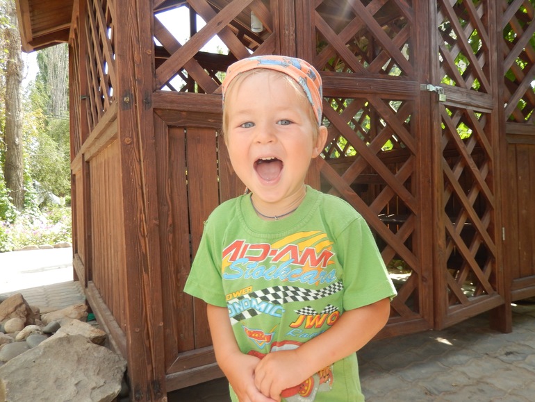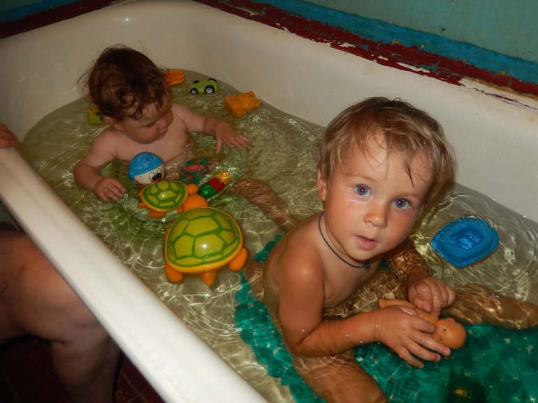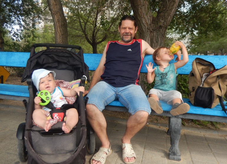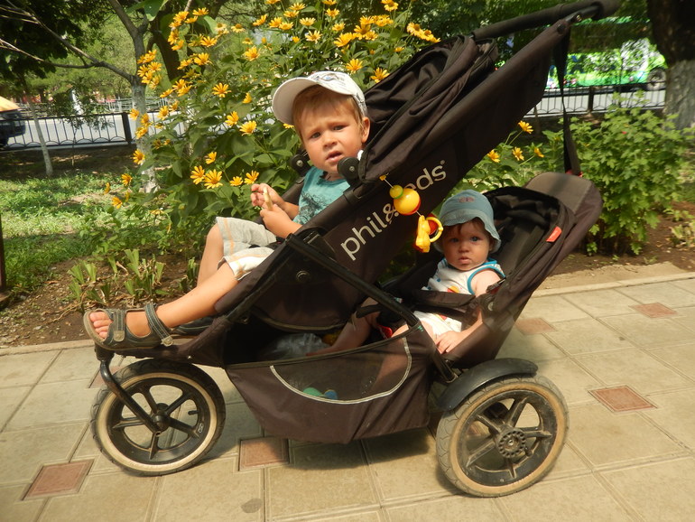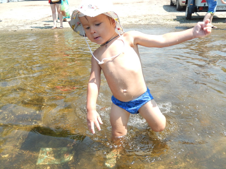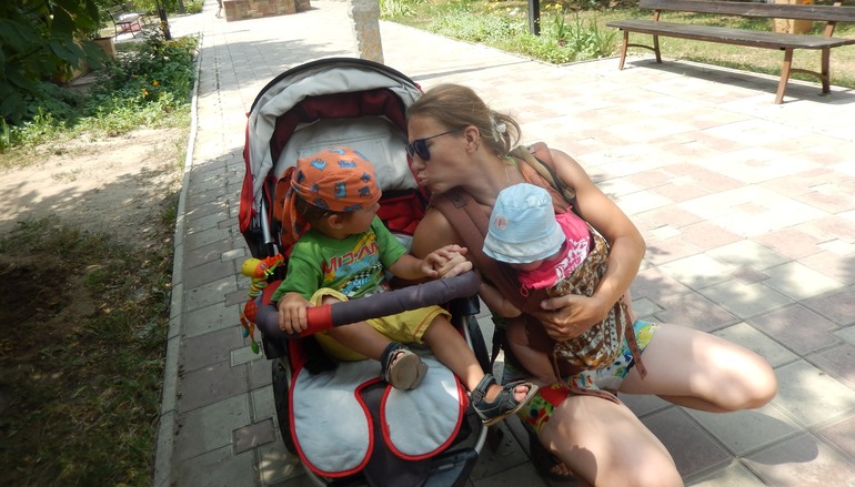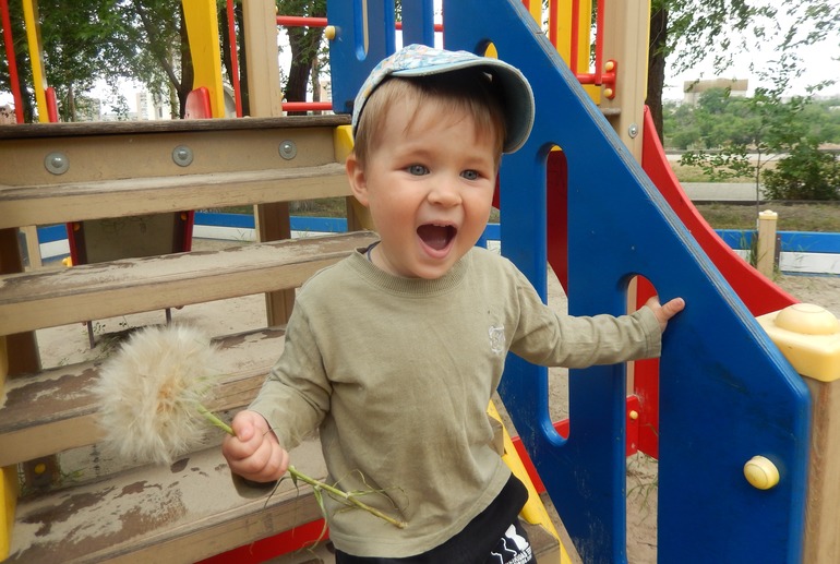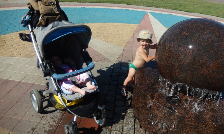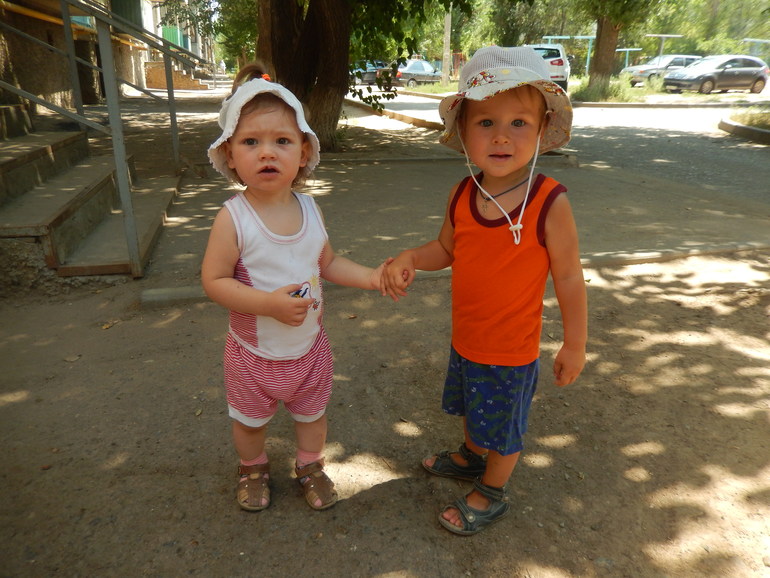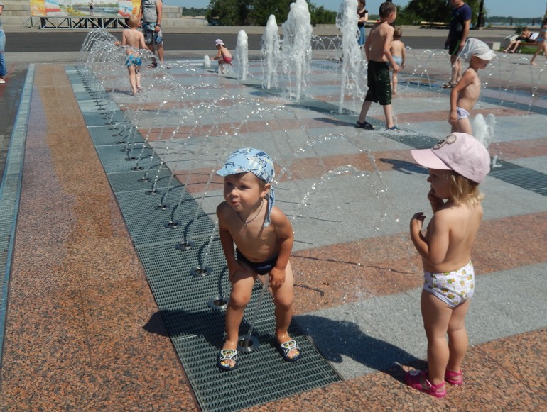 Мы очень много гуляем. Ну, правда, я не знаю гуляет ли кто-нибудь еще также долго? В среднем 5-6, а иногда и 7 часов в день. 2,5-4 утром и 2-3 вечером. Это, конечно, летом так долго началось, но зато теперь мы отрываемся. У нас рядом набережная, канал, открыли недавно фонтан, большие детские площадки в округе знаем все, да еще трамвайные пути в одной остановке!!! А там же дорога и столько транспорта!!!!!!!!! Что еще мальчику нужно для счастья? Разве что занятые другим ребенком качели или чужие игрушки. И тут снова здравствуй истерика… Не буду о грустном. Гулять это здорово. Даже если у вас как у нас +45 на солнце. Главное захватить из дома песочный набор, пару машинок, 2-3 бутылки с водой и банан с печенькой. И важно иметь ГВ с младшей. Села, покормила и дальше гуляй. Еще берем с собой 3-4 запасных шорт, ибо на улице с туалетом проблемы. Редко очень просится сам, чаще спрашиваю хочет ли и почти всегда получаю отрицательный ответ, а через 5 минут надует. Часто, правда и спохватывается и кричит «пипись», но уже при этом упустил. Дописиваем на дерево и все равно приходится переодеваться. А дома ходит в трусиках, «пипись» говорит или «кака» и садится на горшок или накладку унитазную. По-прежнему трусики снимать-одевать не получается ещё. А скорее всего лентяйничает. Лентяйничает и самостоятельно есть. А ведь через месяц в садик, там его мама кормить не будет. Вот и думаю - мучиться сейчас его приучать, так как раз категорически не хочет это делать, то придется именно помучиться, или плюнуть и пусть учат в садике. Побудет пару раз голодным, посмотрит на других и начнет кушать сам???