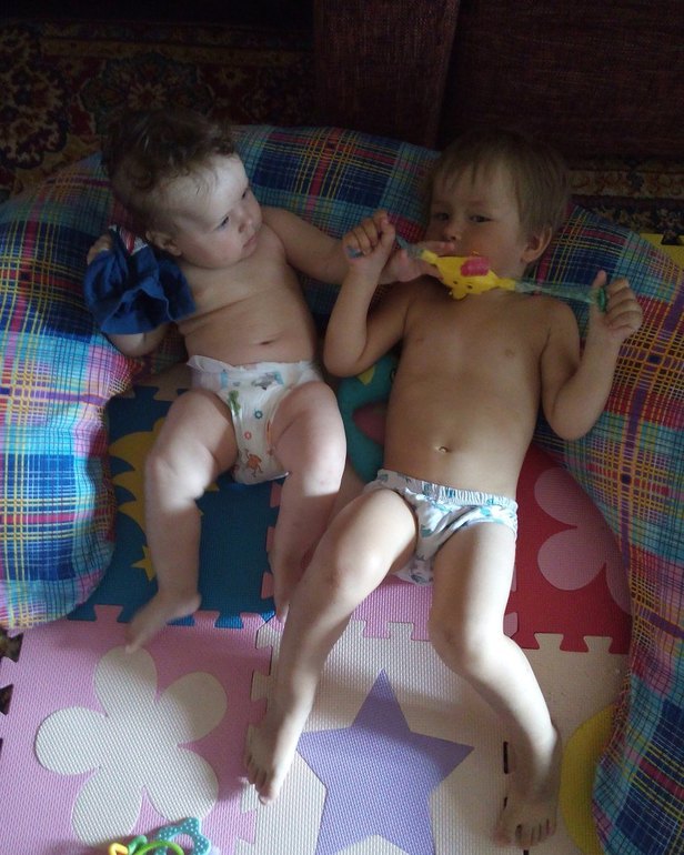 Порой чувствую в себе недомать - как будто дети развиваются сами по себе. В свободное время, когда они бодрствуют, я убираюсь, готовлю, домашние дела какие-то. Если не делаю что-то по дому, то вместе мы только дурачимся. Никаких развивашек не только платных где-то в учреждении, но и дома особой любви к книжкам, пазлам, рисованию и прочему в принципе полезному и нужному пока не замечаю и поэтому не настаиваю. Пусть занимаются тем, чем им нравится, а время для всякой логики и усидчивости у нас ещё впереди!!! Обожаю вечер с ними - совместное купание и укладывание. Стёпу в кроватку и Дашу покормить. В 90% случаев после кормления я поднимаюсь и иду что-то делать, но а в 10% я засыпаю с ними. Слышу, как ворочается в кроватке сын, глажу по голове дочку и благодарю Бога за то, что позволил мне быть их матерью. Проблем у нас хватает, наверно, как у многих в этой стране, в основном это жилищный и денежно-рабочий момент, но я молю Небо всегда только об одном - чтобы мои дети не болели и не получали травм. Ведь только это самое важно для любой матери. Всё остальное, что составляет счастливое детство, она вполне может дать при желании.